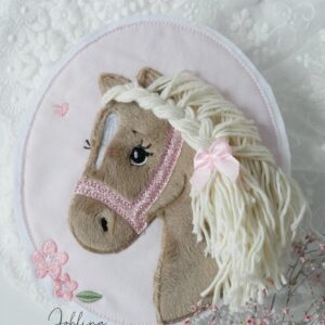 Aufnäher Pferd mit brauner Mähne & Glitzerhalfter