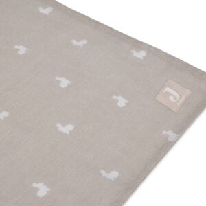 Wunderschöne, zart beige Musselintücher im Doppelpack von Jollein mit kleinen Hasen und süßen Punkten.