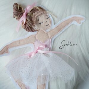 Dieser liebevoll gestaltete Ballett-Aufnäher ist ein echter Hingucker! Mit feinen Stickereien, einem glitzernden weißen Tüllröckchen und einer zarten rosa Schleife ist er perfekt, um Kleidung, Schultüten, Taschen, Kissen oder Kinderzimmer-Deko zu verschönern.