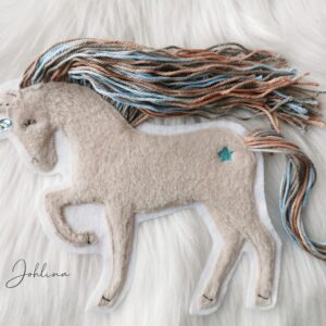 Die tollen Einhörner mit Wollmähne gibt es jetzt exklusiv bei Johlina. Beliebig kannst du die Wollmähne frisieren, verzieren, flechten und natürlich auch kürzen.