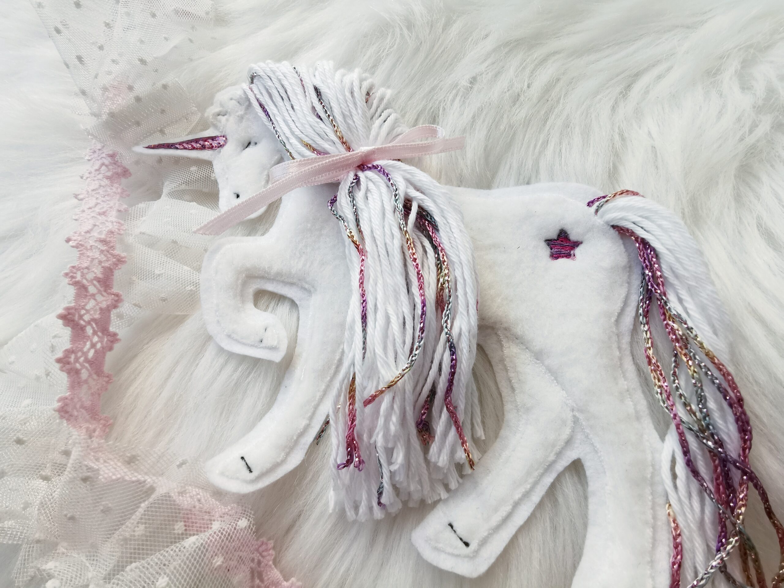 Die tollen Einhörner mit Wollmähne gibt es jetzt exklusiv bei Johlina. Beliebig kannst du die Wollmähne frisieren, verzieren, flechten und natürlich auch kürzen.