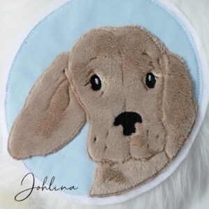 Großer Hundekopf Aufnäher aus Plüsch, Applikation zum Aufbügeln & Aufnähen