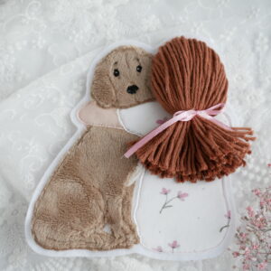 Den tollen Aufnäher “Hundeliebe” mit Mädchen (braune Haare).