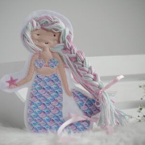 Die tollen Meerjungfrauen mit Wollhaaren gibt es in vielen verschiedenen Farben. Beliebig kannst du die Wollhaare frisieren, flechten und natürlich auch kürzen.