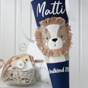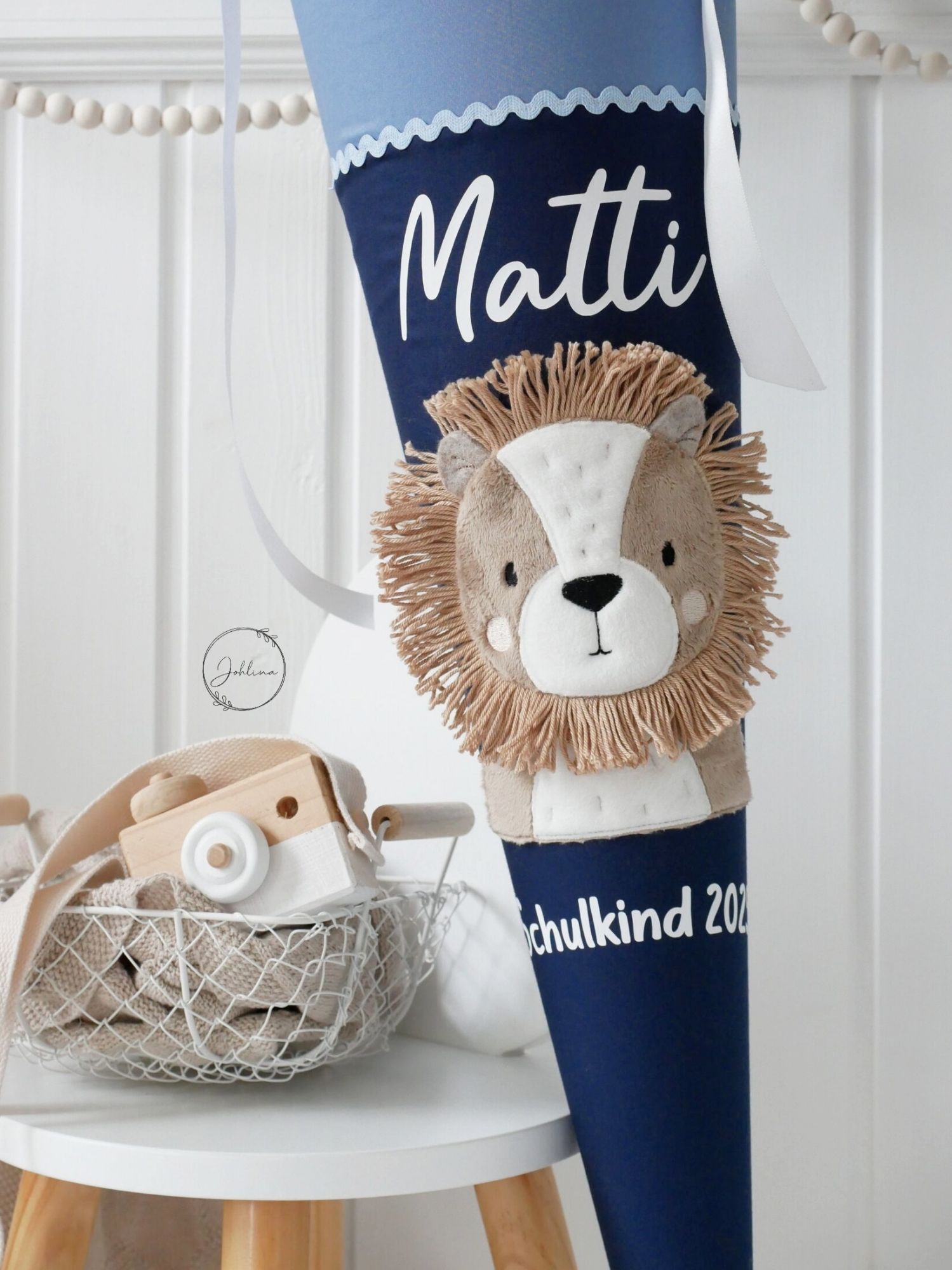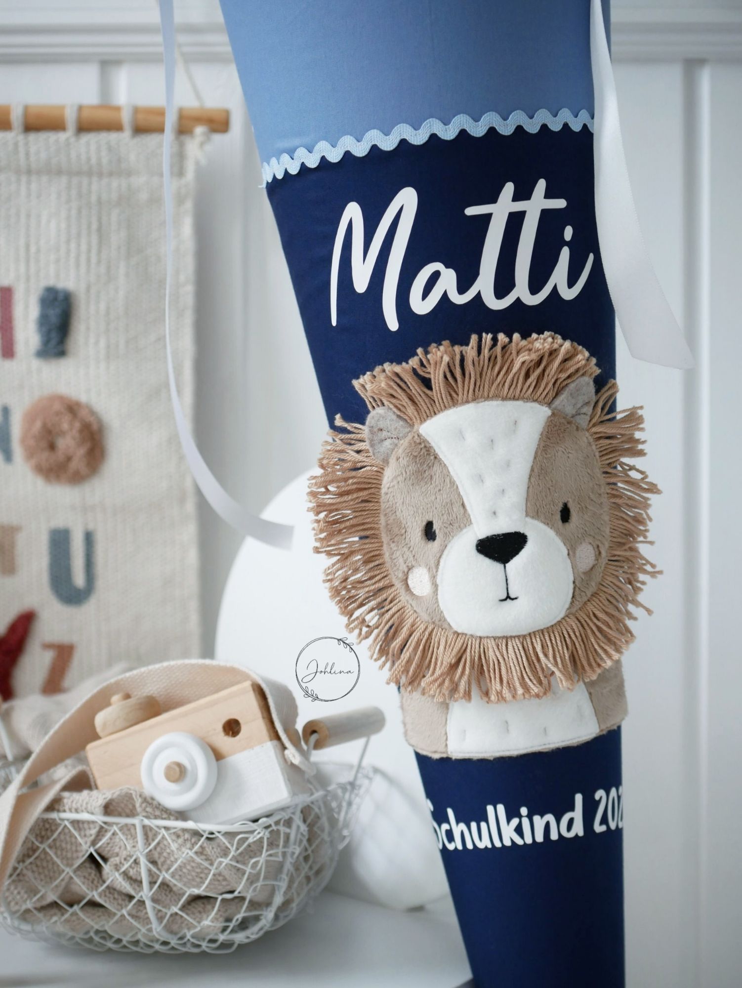 Mit dieser wunderschönen Löwen-Schultüte in dunkelblau und hellblau wird der erste Schultag zu einem echten Abenteuer! 💙