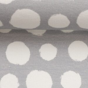 Wunderschöner, leicht angerauter Sweat in grau mit weißen Tupfen (2 bis ca. 3,5 cm) aus dem Hause Swafing.
